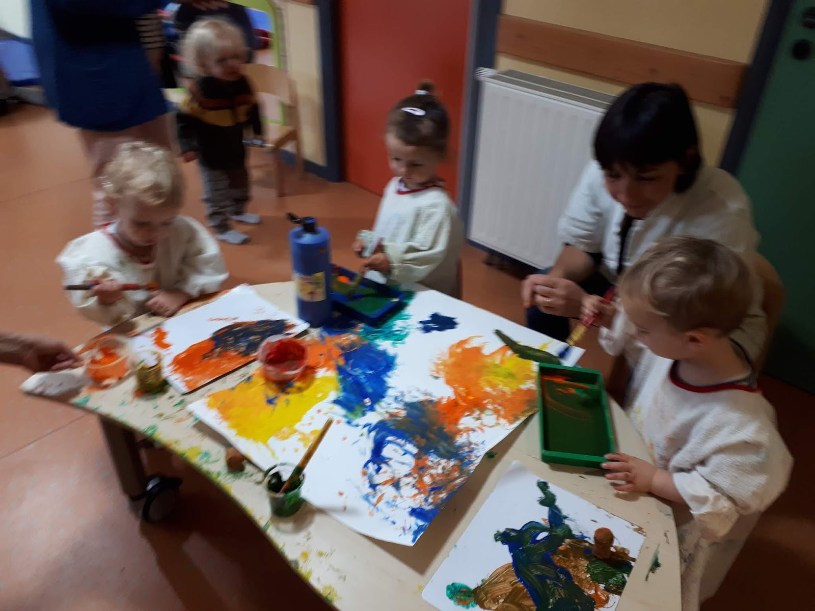 Ce mardi c'est peinture collective, nous découperons dans la peinture de quoi orner les murs de notre salle aux couleurs d'automne...