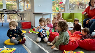 Ce mardi matin, le groupe B se retrouve à la bibliothèque autour de Nadège. Elle nous a raconté plein d'histoires de loup puis quelques comptines sur le même thème...