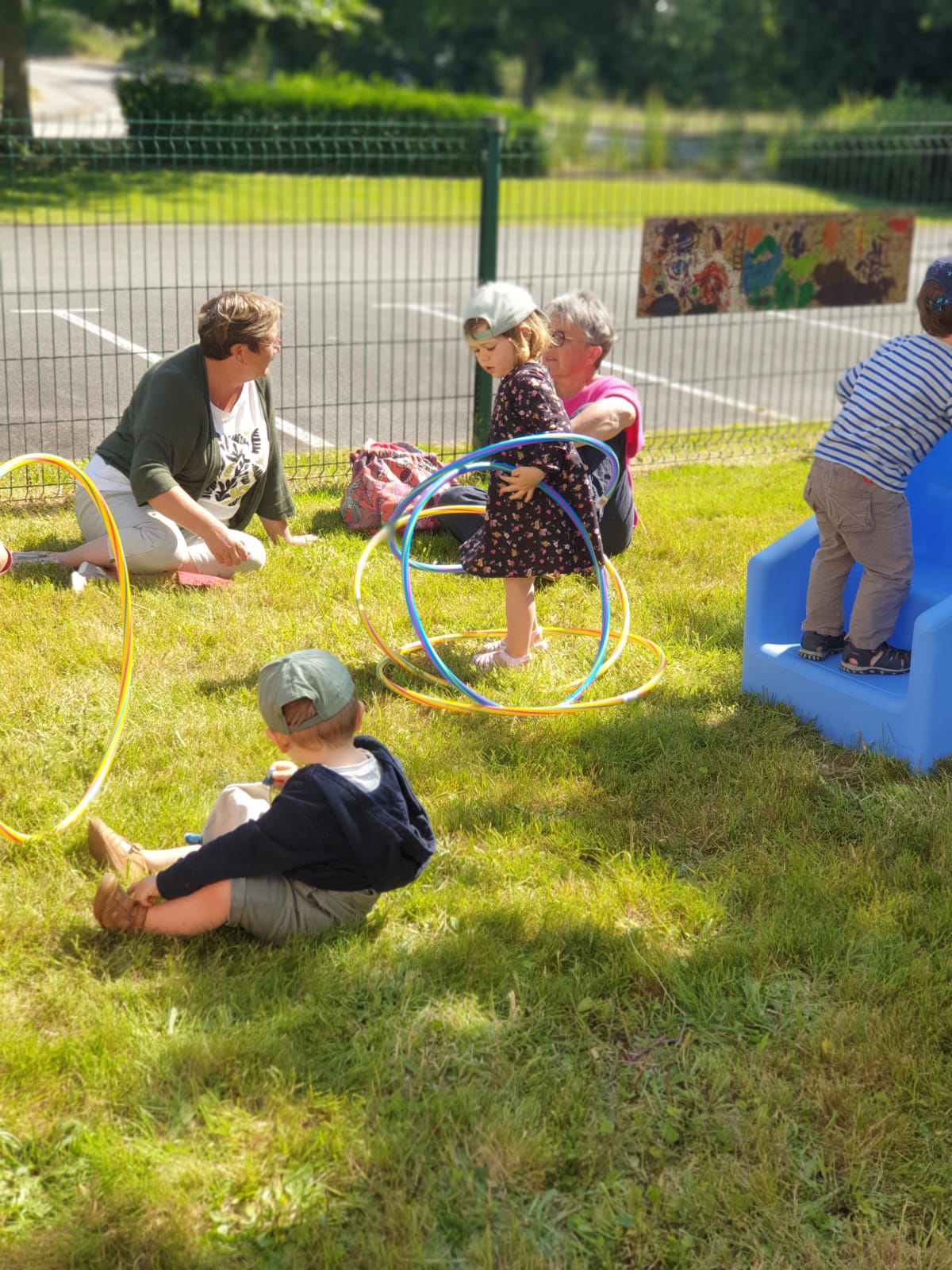 Nous profitons du petit jardin près de la salle pour jouer aux ballons, aux Toboggans, avec le culbuto ainsi que les hochets et différents jeux mis à la portée des plus petits