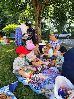 Dernière activité en salle, nous sortons tous les véhicules : tracteurs, draisiennes, poussettes et poupées...